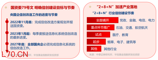 中信证券指出,科技博弈背景下,信创发展兼具迫切性与确定性,景气度有望持续回升。国泰君安证券指出,信创行业具备景气修复、产品性能提升、国产算力引领三大特征,硬件和软件国产化率当前仍较低,未来2年受“2+8+N政策影响,相关订单有望加速落地,其中国产算力等细分领域还能带动信创全链条发展。
