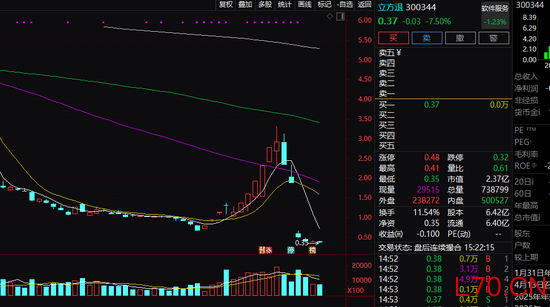 其中立方退今天收盘大跌7.50%,股价报0.37元/股。今年1月至2月期间,该股一度出现一波强劲涨势,每股股价一度从不足1元涨至超过3元,2月11日股价最高一度达到3.33元/股,是今年1月股价低位的3倍以上。但2月12日以来,特别是进入退市整理期后,该股开始连续暴跌,这一案例也再次折射出部分退市风险股可能存在的投资风险,投资者需要留意此类风险。