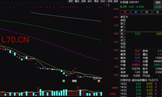 A股市场目前有两只已进入退市整理期的股票,分别为立方退(维权)(300344)和长药退(维权)(300391),两只股票今天进一步大幅下跌。