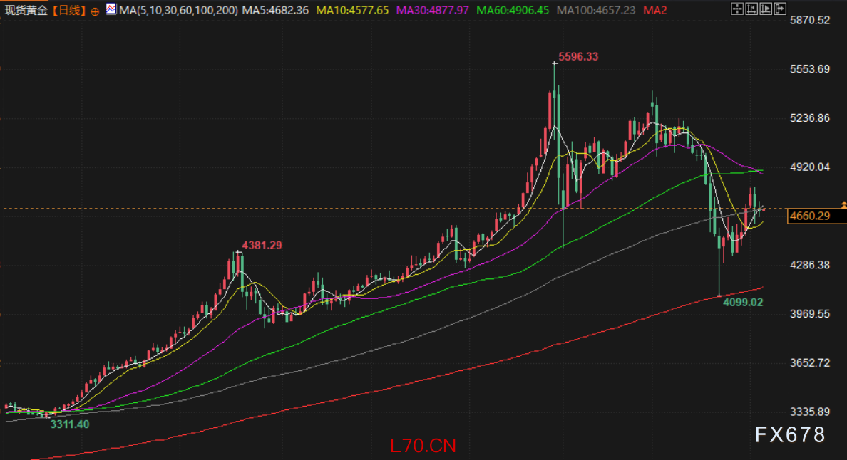 金价周一小幅走低,现货黄金下跌0.4%至每盎司4654.99美元,因投资者密切关注美伊局势的最新动向,等待霍尔木兹海峡重开最后期限的进一步信号。
