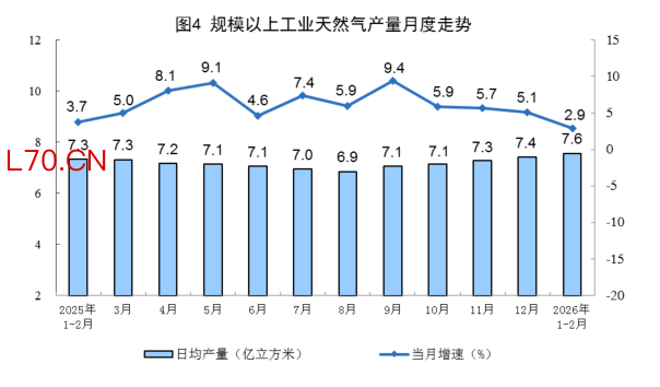 国家统计局:1—2月份,规上工业天然气产量同比增长2.9%