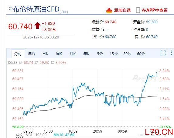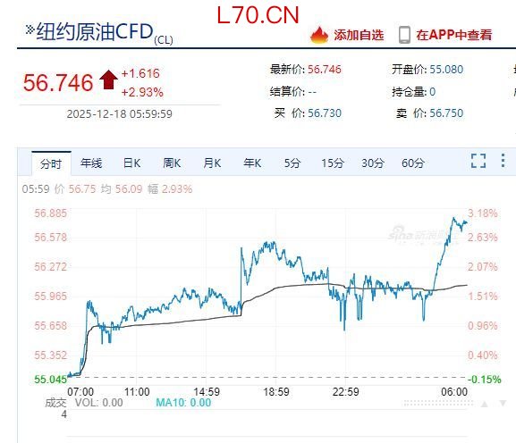 据央视新闻,当地时间12月17日,在美国总统特朗普下令全面封锁所有进出委内瑞拉的受制裁油轮后,市场对地缘政治风险担忧升温,推动油价走高。国际油价一度涨超3%。