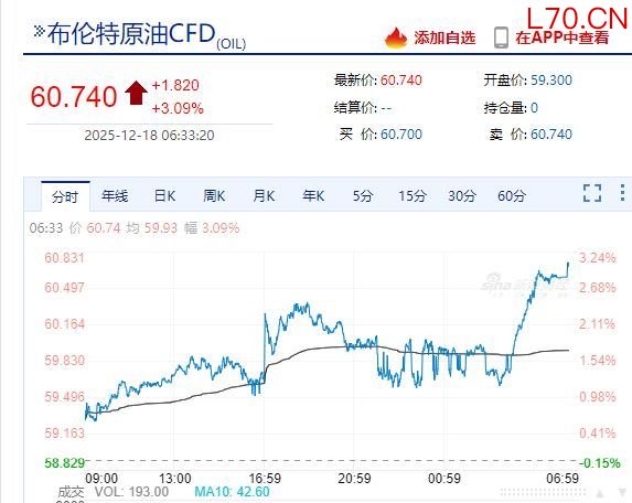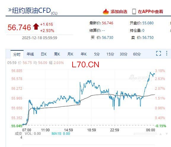 据央视新闻,当地时间12月17日,在美国总统特朗普下令全面封锁所有进出委内瑞拉的受制裁油轮后,市场对地缘政治风险担忧升温,推动油价走高。国际油价一度涨超3%。