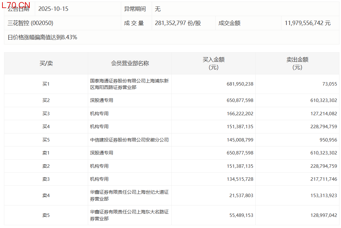 三花智控今日涨停,有2家机构专用席位净卖出1.61亿元