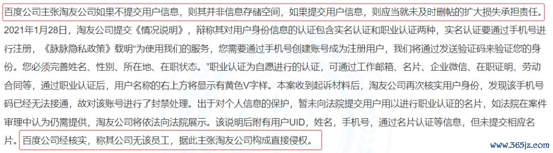 即便是把用户信息交了上去,脉脉也不能全身而退,百度还给他留了一个“未及时删帖,扩大损失”的责任。