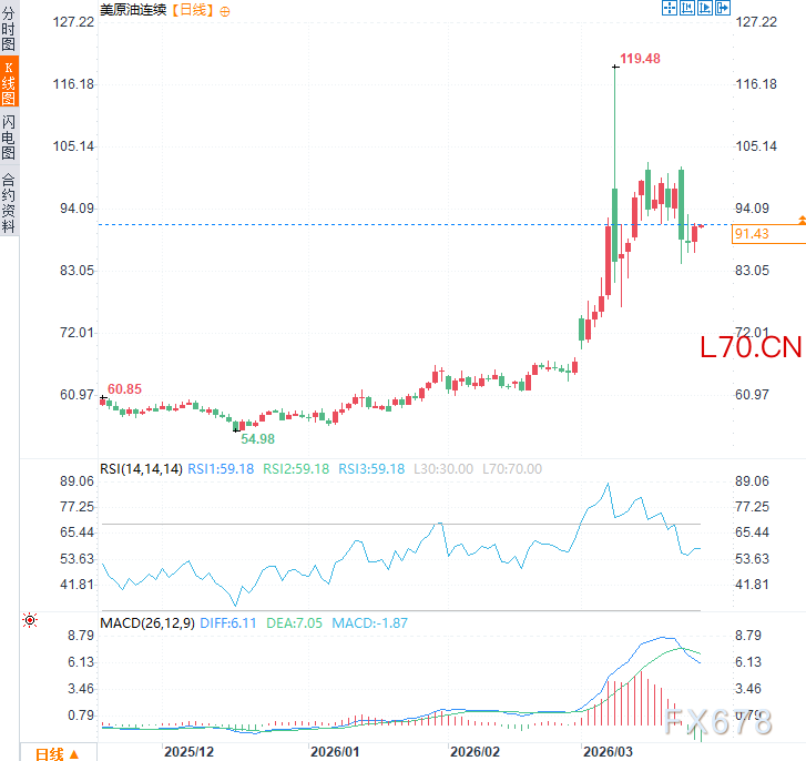 周四(3月26日)亚市时段,美原油价格震荡走强,延续前一交易日涨势,现交投于每桶91.40美元附近,日内涨幅约1.2%,投资者对伊朗拒绝与美国直接谈判的表态重燃供应中断担忧。伊朗外交部长阿巴斯·阿拉格奇周三对国家媒体表示,伊朗无意与美国举行直接谈判,尽管最高当局正在审查美国提出的结束战争方案。霍尔木兹海峡航运持续受阻,全球能源供应紧张预期推动油价反弹。