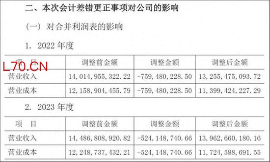 具体来看,2022-2023年度,供应链公司部分铬铁贸易业务存在公司未实质参与物流环节、采购销售合同的主要条款存在对应关系的交易以及交易上下游存在关联方关系,公司基于谨慎性原则将2022-2023年度该部分铬铁贸易业务按照净额法确认收入,相应形成的重要前期差错更正涉及调减2022-2023年度合并财务报表营业收入及营业成本分别为75,948.02万元和52,414.87万元。