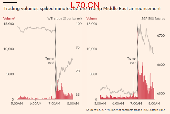 在特朗普于社交媒体发文称与伊朗谈判“富有成效”、引发原油价格暴跌并波及其他资产剧烈波动前约15分钟,交易员已在原油市场押下价值超5亿美元的赌注。