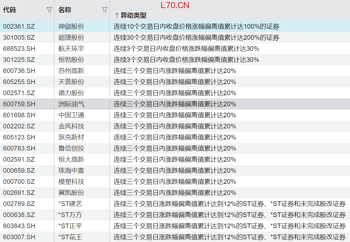 连续异动个股一览